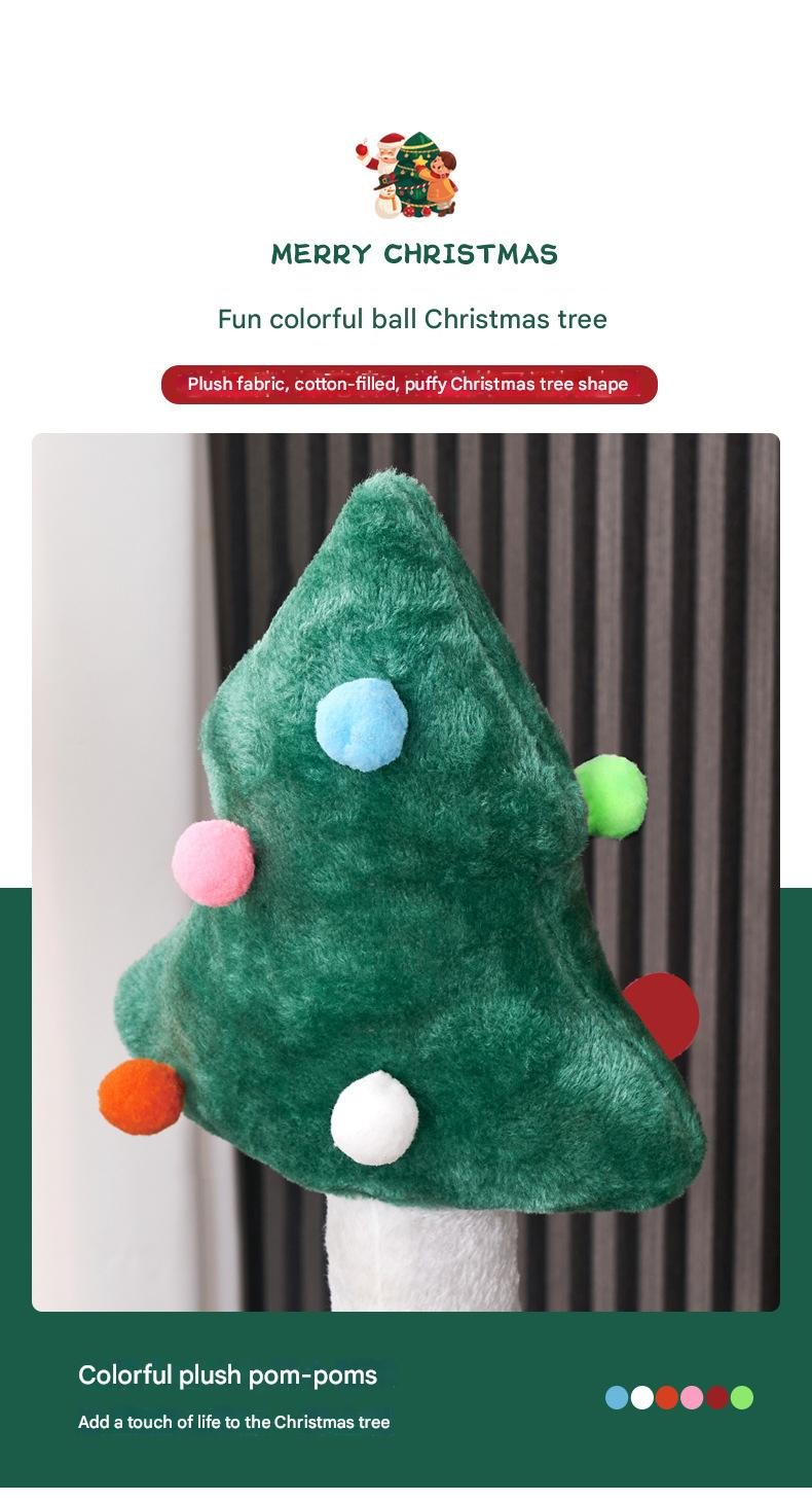 - A plush Christmas tree adorned with colorful pom-poms — a playful focal point that sparks curiosity.