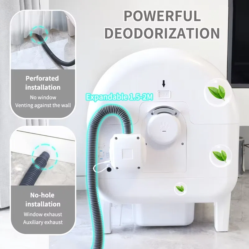 Equipped with automatic cleaning and smart monitoring features, this cat litter box ensures freshness and reduces daily maintenance for pet owners. Its easy-to-clean structure helps maintain hygiene while minimizing odor, providing a safe and convenient experience for both cats and owners.