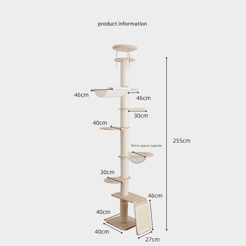 Standing at 255cm high, this cat tree offers ample room for climbing, napping, and perching. It features varied spots (46cm large resting platforms, 30cm cozy space capsules, etc.)—so your cat can switch between sunbathing on open shelves and curling up in enclosed nooks (ideal for kitties who love surveying their “territory” from high up).