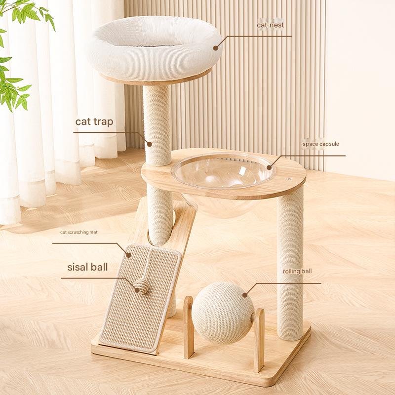 • Transparent Space Capsule: The mid-level acrylic space capsule gives your cat a secure, enclosed spot to relax while still feeling connected to their surroundings. It’s ideal for curious cats who love to observe without being fully exposed.