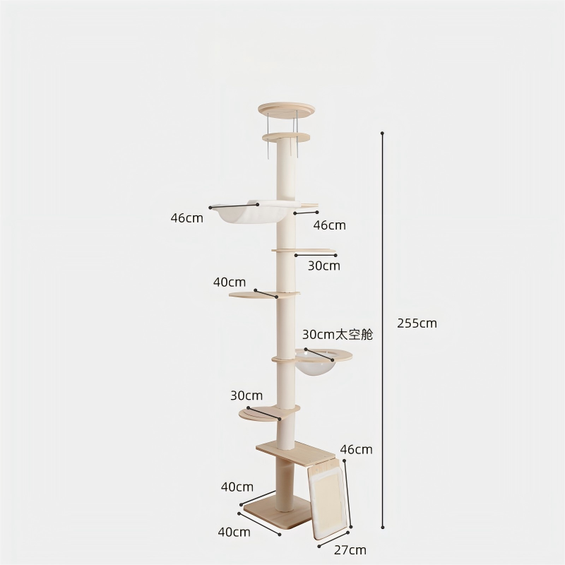 - Tall & Ceiling-Mounted Stability: With a height of 255cm and a ceiling-fixed top structure, it offers ultra-sturdy support for cats to safely climb and explore high spaces.