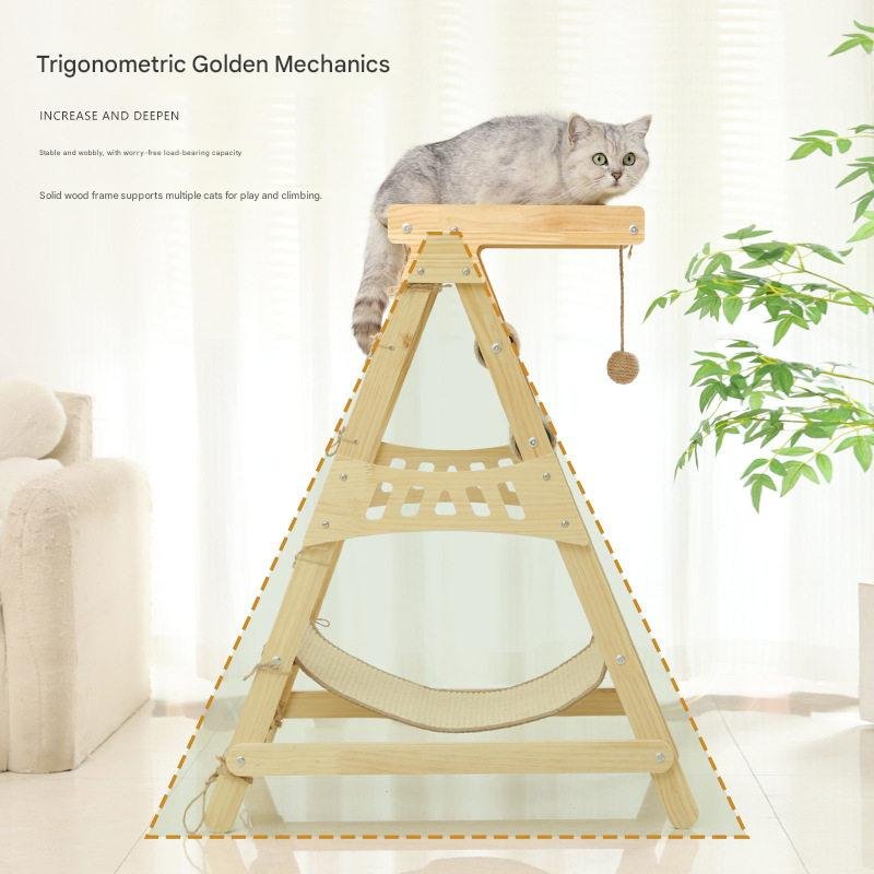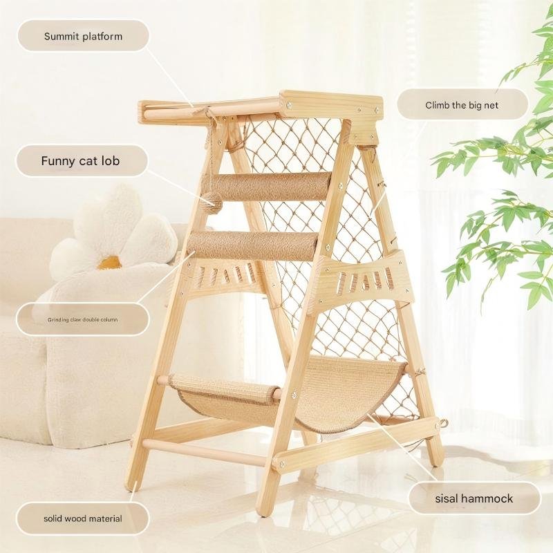 Sturdy solid wood frame with triangular structure ensures stable performance and strong load bearing, allowing multiple cats to play and climb at the same time